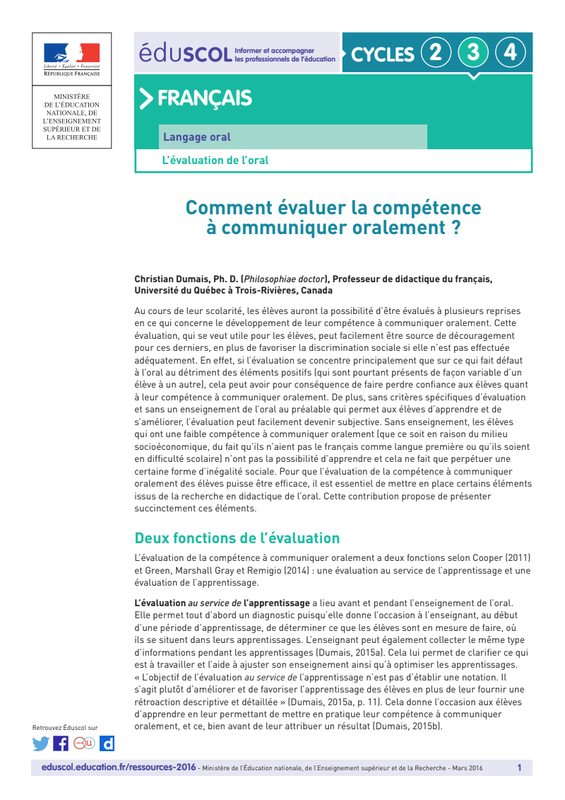 Comment évaluer la compétence à cmmuniquer ? Ch. Dumais