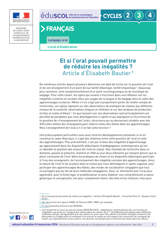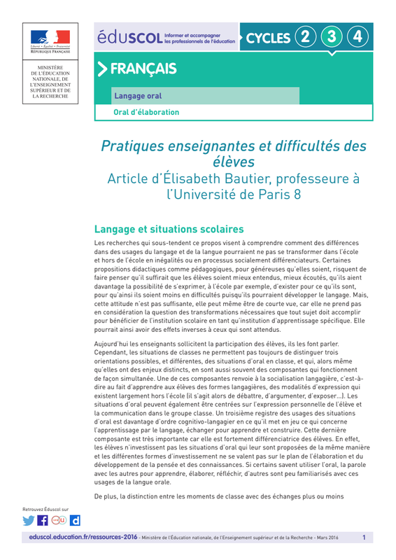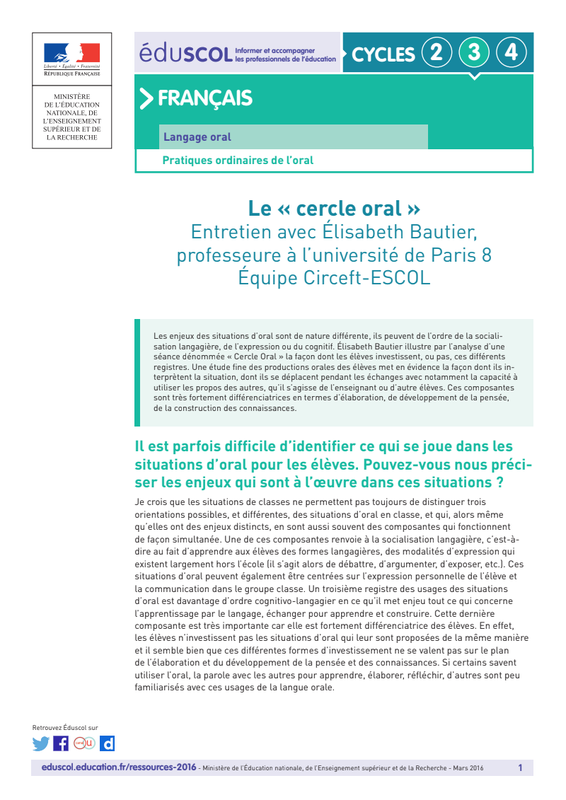Le "cercle oral", E. Bautier