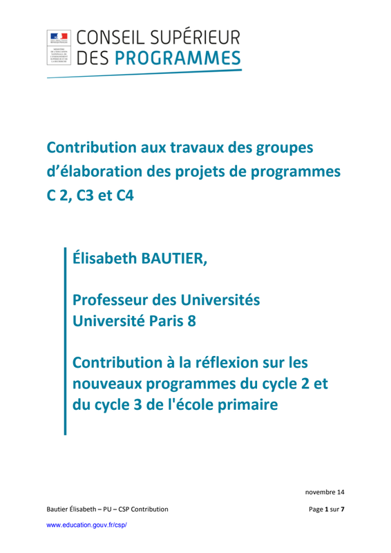 Contributions à la réflexion sur les nouveaux programmes du cycle 2 et cycle 3 de l'école primaire